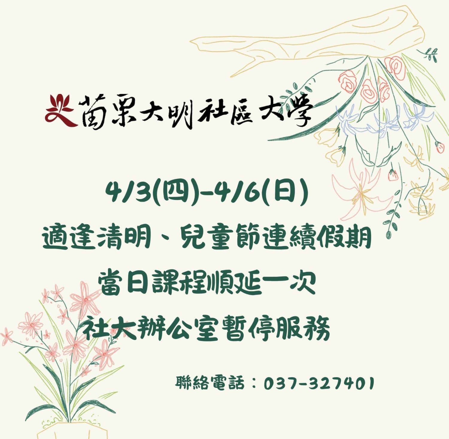 114/4/3(四)-4/6(日) 清明、兒童節連假